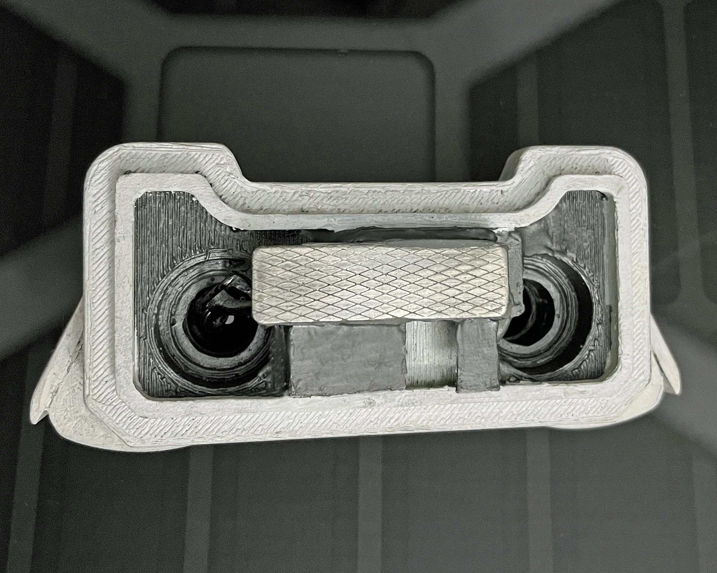 The last picture is the inside of his lower leg, which had been printed in wonderful detail. The screws I added fit the look of the design, and I used scrap wires to reproduce BD’s sketchy wiring job.
